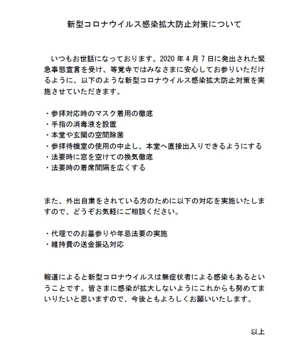 等覚寺からのお知らせ